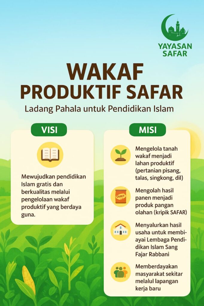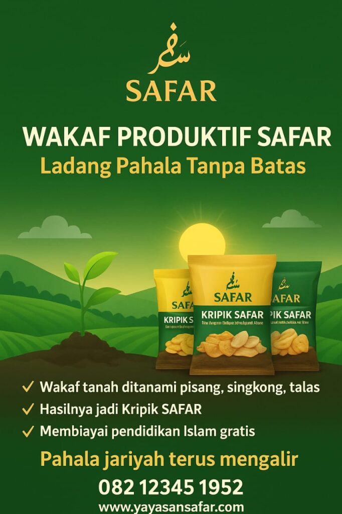 Dari hasil bumi itu, lahirlah produk kripik pisang, singkong, dan talas — olahan penuh keberkahan yang menjadi sumber pembiayaan bagi lembaga pendidikan di bawah Yayasan SAFAR (Sang Fajar Rabbani).